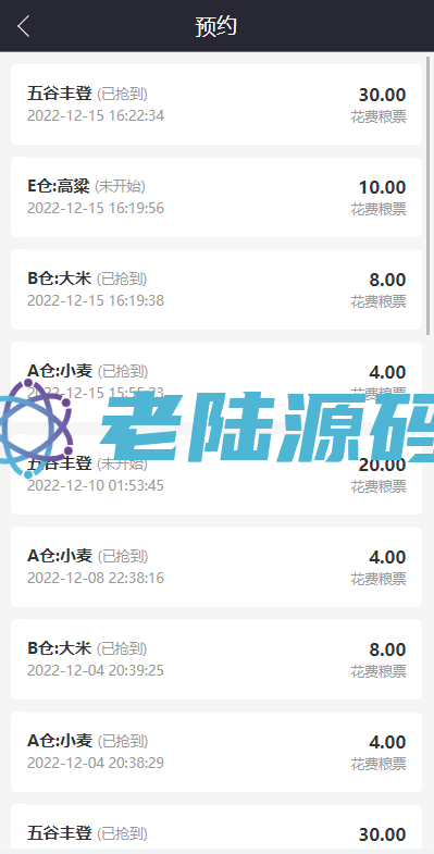 每天抢购交易时间分5个时段,在每个规定时间段内,抢到则能下单,抢不到只能等下一轮,抢不到退回预约粮票。